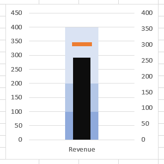 Designed and popularized by Stephen Few, the bullet chart takes inspiration from the regular bar graph but at the same time provides users additional context. The ability of the bullet chart to convey information makes it a better alternative to more traditional meter and gauge charts. While bullet charts can be viewed as simple bar chart or stacked column variants, the difference is that they are created with additional visual elements to offer additional context to users.