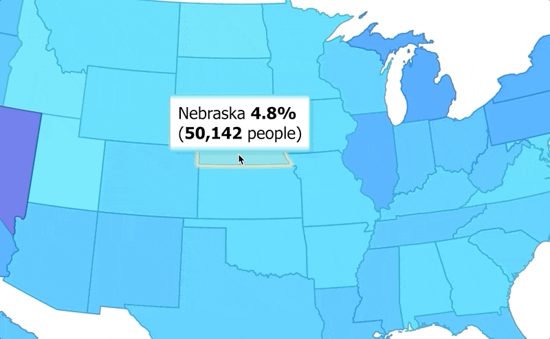 Some scenarios where points are bunched together (such as on maps or heatmaps), offer no good positions for tooltips to show. A followCursor mode has been added to give the user more control in these scenarios. Users can adjust tooltip positions by simply moving the cursor. This mode is set automatically for series types including organizational, map, and heatmap charts.