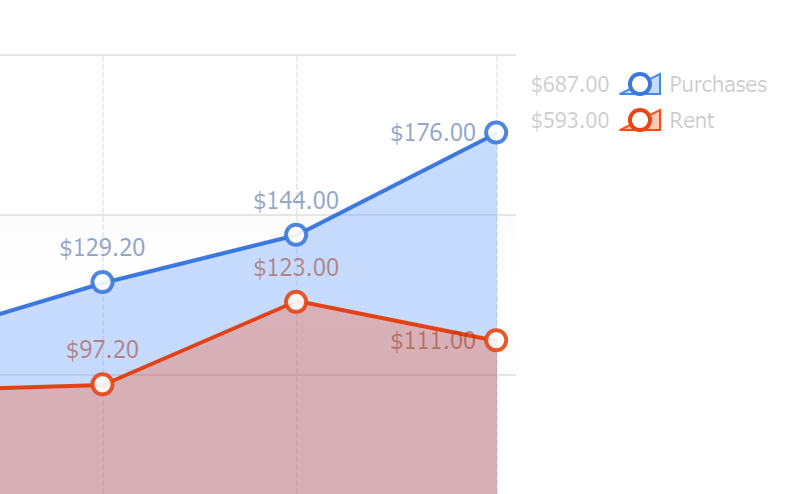 Legend line icons are enhanced with the addition of dash styles and represent line series of varying widths and dash styles more accurately by scaling both attributes on the legend icon.