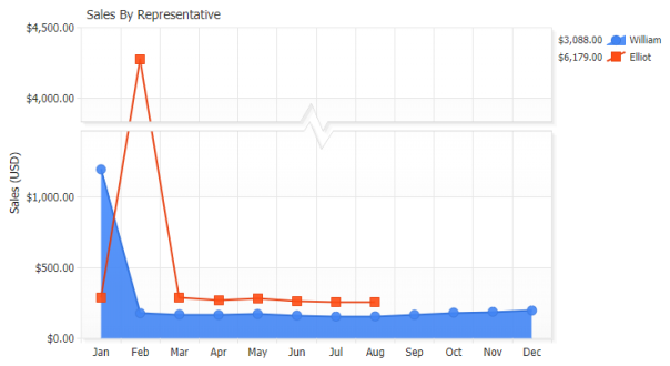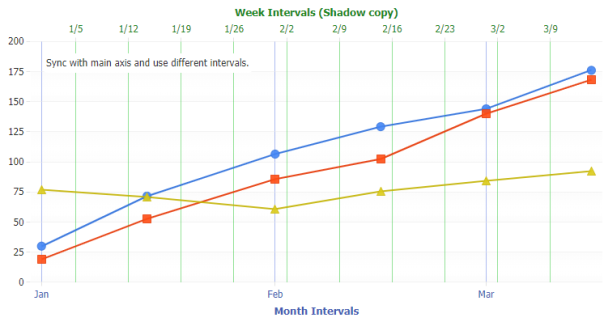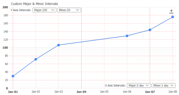 JSCharting has advanced axis support which automatically tunes, labels and animates axis transitions and scales. Axes may be duplicated and customized to show different units and complete support for multiple axis is standard. Customization and control is also offered for major and minor tick styling and interval settings. Advanced culture support ensures that your data displays correctly and is formatted correctly in different browsers, countries and cultures.