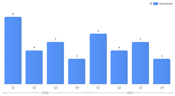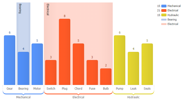 Multi-level category axis range tick labels.