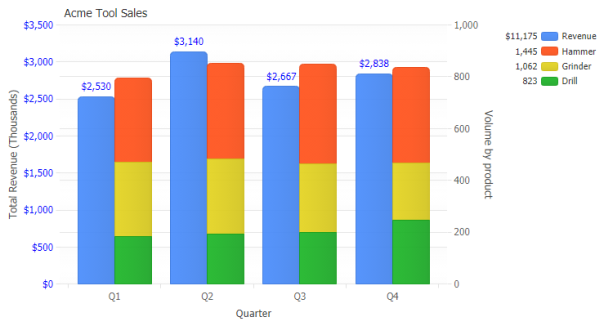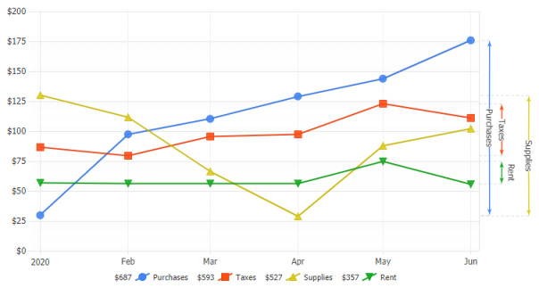Demonstrates using multiple Y Axes using regular and stacked scales.