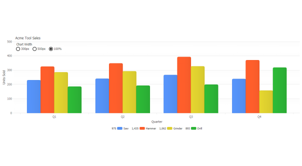 An advanced automatic layout system ensures chart elements are positioned ideally utilizing simple position settings. Positions can also be tweaked with offset values to refine a custom visual balance complementary to your site design objectives.