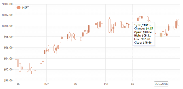 JSCharting provides advanced financial stock chart support including candlestick, open-high-low-close (OHLC), volume, multiple chart areas and technical indicators. Advanced pan and zoom functionality, including a google finance like navigator interface are also supported