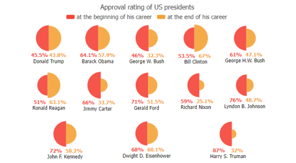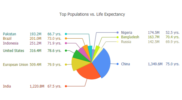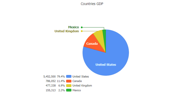 Pie charts are a popular JavaScript chart type offering proportional segmented values relative to the whole. JSCharting supports advanced pie features including label callouts, donut charts, HTML tooltips and stacked or nested pie support to quickly and efficiently compare data across different periods or groupings. Create a simple pie chart with no CSS settings required using resolution independent SVG and HTML5. JavaScript pie charts show your data points, custom styling (including background colors), start angle, border width and more. The pie chart data visualization requires no server-side code and accepts JSON configuration and data input with no plugins (not even jQuery) required.