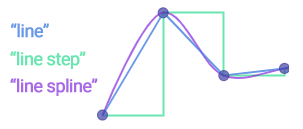 Three types of line shapes can be created. Standard line, curved lines (spline), and stepped lines. The series type settings for the different line types are: